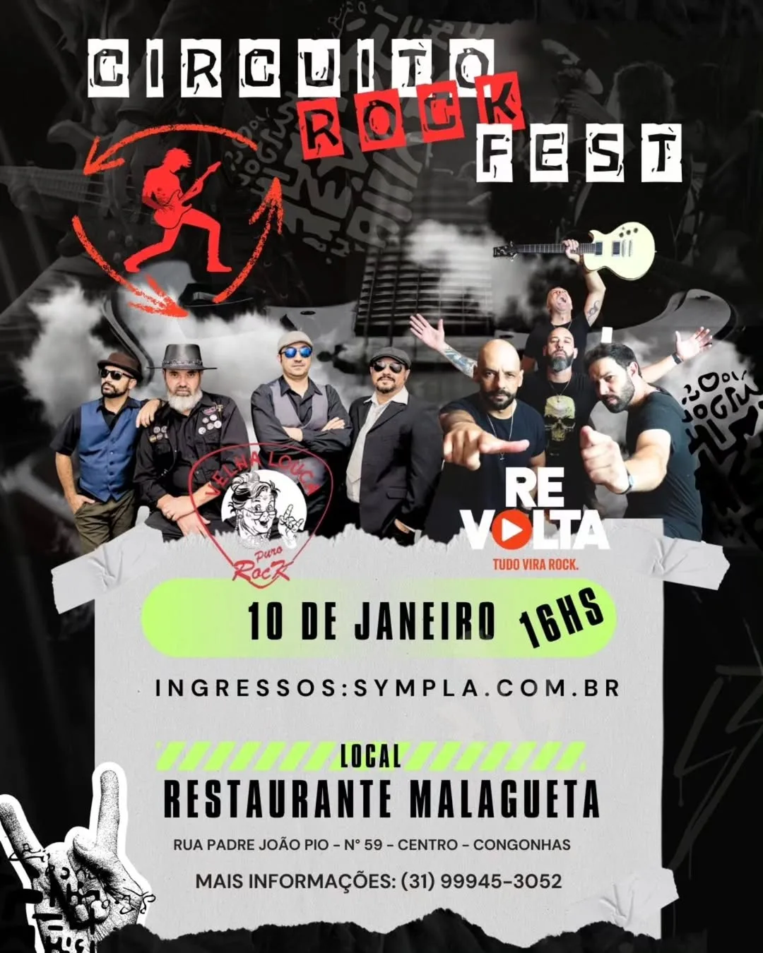 A primeira edição do Circuito Rock Fest vem para fazer história! No dia 10 de janeiro, o Restaurante Malagueta será o palco de uma experiência insana, reunindo o melhor do rock regional, energia positiva e muita gente bonita.