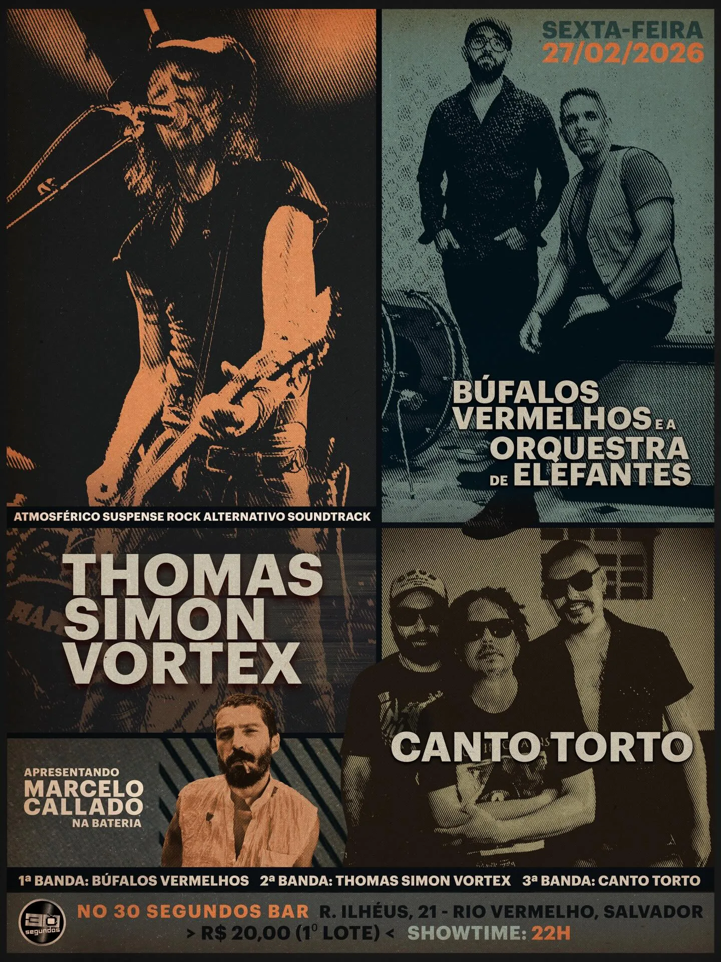 Dividindo o palco, a banda Muzgo apresenta seu som autoral, prometendo uma experiência imersiva e visceral. É a oportunidade perfeita para conhecer novas vertentes musicais em um ambiente intimista e acolhedor.