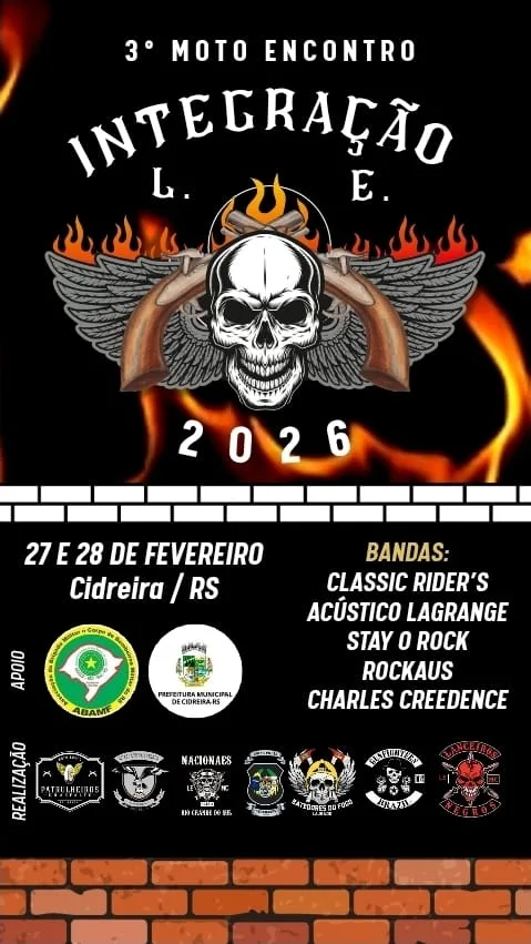 Nos dias 27 e 28 de fevereiro de 2026, a cidade de Cidreira/RS recebe mais uma edição deste evento que já se tornou referência na região. O Patrulheiros do Asfalto MC convida todos os irmãos motociclistas para um fim de semana de muita união, troca de experiências e brisa do mar.